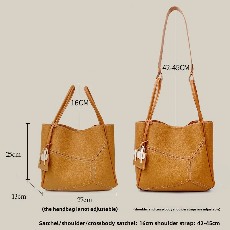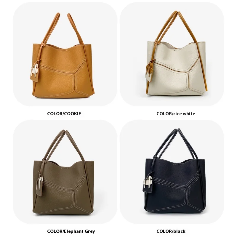 A-147 2026 New Women's Genuine Leather Tote Bag Niche Design Splicing Shoulder Crossbody Bags Polyester Lining Zipper Fashion